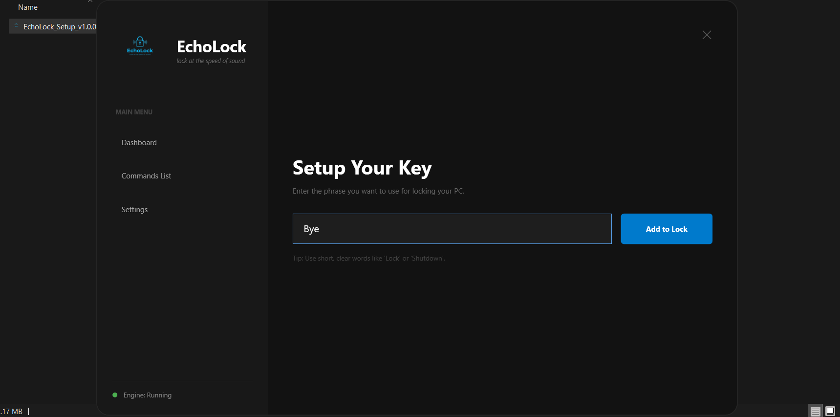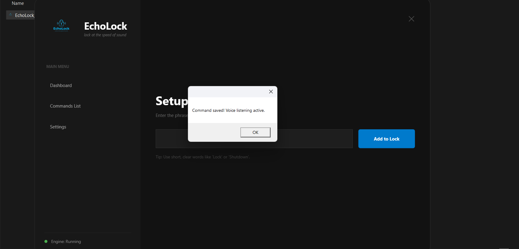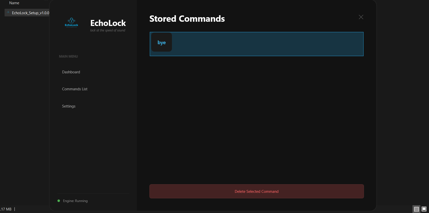 You can view, edit, or manage your voice commands by clicking on the Commands menu inside EchoLock.